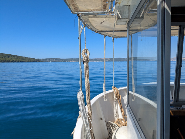 Day 2 began diving operations, but more importantly, it began with extensive planning and discussion. As we were working with our Croatian partners, who were leading the diving, collaboration was integral to the safe and successful execution of diving operations. The 50-minute boat ride to the site was spent outlining plans, ensuring understanding, and modifying plans to encompass helpful suggestions. To establish our site grid, we dropped four buoys at specific locations to create a square, running a line between them. Divers were then deployed to adjust the grid and drive rebar stakes into the seafloor to act as datums. The divers were split into split into dive groups of three to conduct systematic hand fanning. My team used a measuring tape to hand-fan (a technique of using hand movements to gently remove recent sediment and expose the intact soils) to search for evidence of prehistoric occupation. None were found during the survey by my team, but another team had much more success in the northeastern portion of the grid. Day 3 continued with diving operations, focusing the hand-fanning survey in the northeastern portion of the site grid and revealing great potential for an intact prehistoric site.